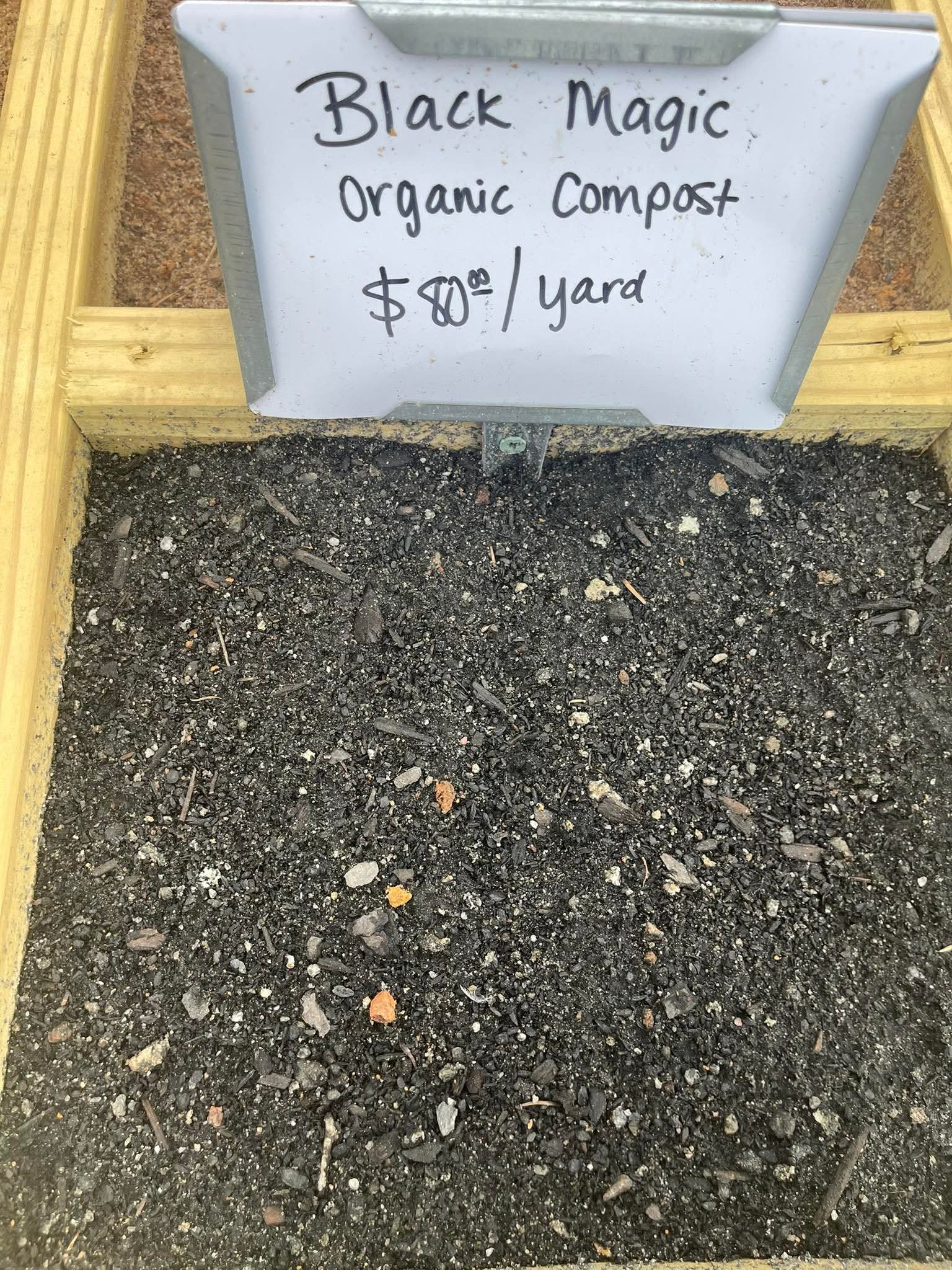 Our compost (remove screened) is made locally in SC . Black Majic is premium compost made with chicken manure making it the best you can buy to improve anything you plant. Farmers add it to their fields to increase vegetable production every year.