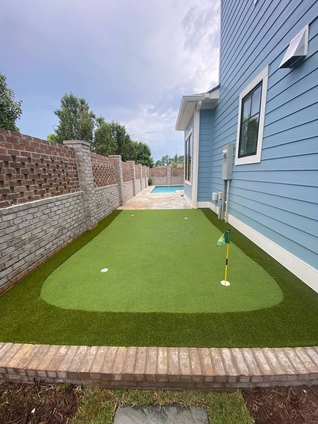Take your short game to the next level with our high-quality synthetic turf—crafted to replicate the look, feel, and performance of a professional golf green. At Southern Carolina Palms & More, we offer backyard putting greens that provide a true roll and consistent surface, perfect for practice or play in the comfort of your own yard. Whether you’re a weekend golfer or a dedicated enthusiast, our turf systems help you sharpen your skills year-round without the hassle of traditional lawn maintenance.